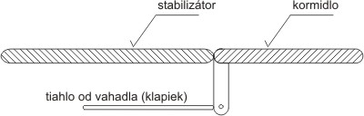 obr. 8 V prípade, že zvolíme model s klapkami, je nutné ich mechanicky prepojí s výškovkou. Prvou "fázou" je prepojenie vahadla a klapiek, tu postačí kratší kus špice. Druhou "fázou" je prepojenie klapiek s kormidlom, hore uvedeným spôsobom. Jemné doladenie polohy klapiek voči kormidlu, je najspoľahlivejšie pomocou kovových vidličiek s čapom (najčastejšie používané v RC modeloch), ktoré sa naskrutkujú priamo na závit na konci tiahla (obr.10) a poistia proti povoleniu vibráciami kontramatkou.