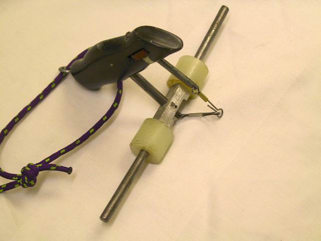 Dolaďovanie neutrálnej polohy výškového kormidla je celkom praktické, hlavne bez toho, aby sa museli medzi lanko a karabínku vkladat predlžovacie segmenty, ktoré sú vlastne tvorené karabínkami rôznych dĺžok. Preto uvádzam ako jedno z možných riešení takejto regulovateľnej rukoväte je opísané v TOMTO článku.