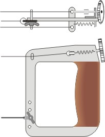 Pre zaujímavosť, rukoväť sa, čo do možností regulácie, dá vyriešiť aj tak, ako to prepracoval Alexander Schrek na svojej rukoväti - obr. 6, či pomerne bizarná rukoväť, ktorá sa používa v kateg F2A.