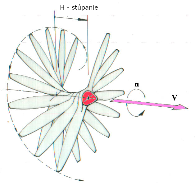 obr.1Vztlak spôsobovaný vrtuľou, pôsobí kolmo na smer nabiehajúceho prúdu vzduchu a jeho výsledkom je sila, ktorá zaisťuje postupný (dopredný) pohyb modelu. Odpor pôsobí v smere prúdu vzduchu nabiehajúceho na vrtuľu a k prekonaniu jeho zložky, premietnutej do roviny otáčania vrtule, je potrebné vynaložiť určitý výkon. Odpor listov vrtule pôsobí na určitom ramene od osi otáčania a jeho zložka tak vytvára moment, ktorý je prekonávaný krútiacim momentom motoru. Preto je dôležité poznať nielen priebeh výkonu motora v závislosti na otáčkach, ale aj priebeh jeho krútiaceho momentu, ak chceme zvoliť, alebo dokonca sami navrhnúť správnu vrtuľu.